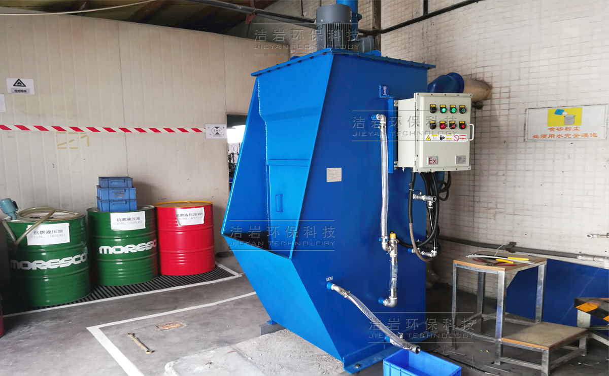 LV型号湿式除尘器净化空气结合离心力的作用,水和带尘气体能够充分混合,高速气流通过固定式叶轮的产生水幕,气流中的灰尘通过水幕时,由于空气流动方向的快速变化产生离心力使尘埃颗粒穿透水滴,并被永久的困在水里。由于三道除雾挡板的存在,载满灰尘的水雾会从气流中除去。尘埃最后沉淀在设备底部,水还可以重复使用。水帷幕是由气流冲激水面产生,无需泵或喷嘴。