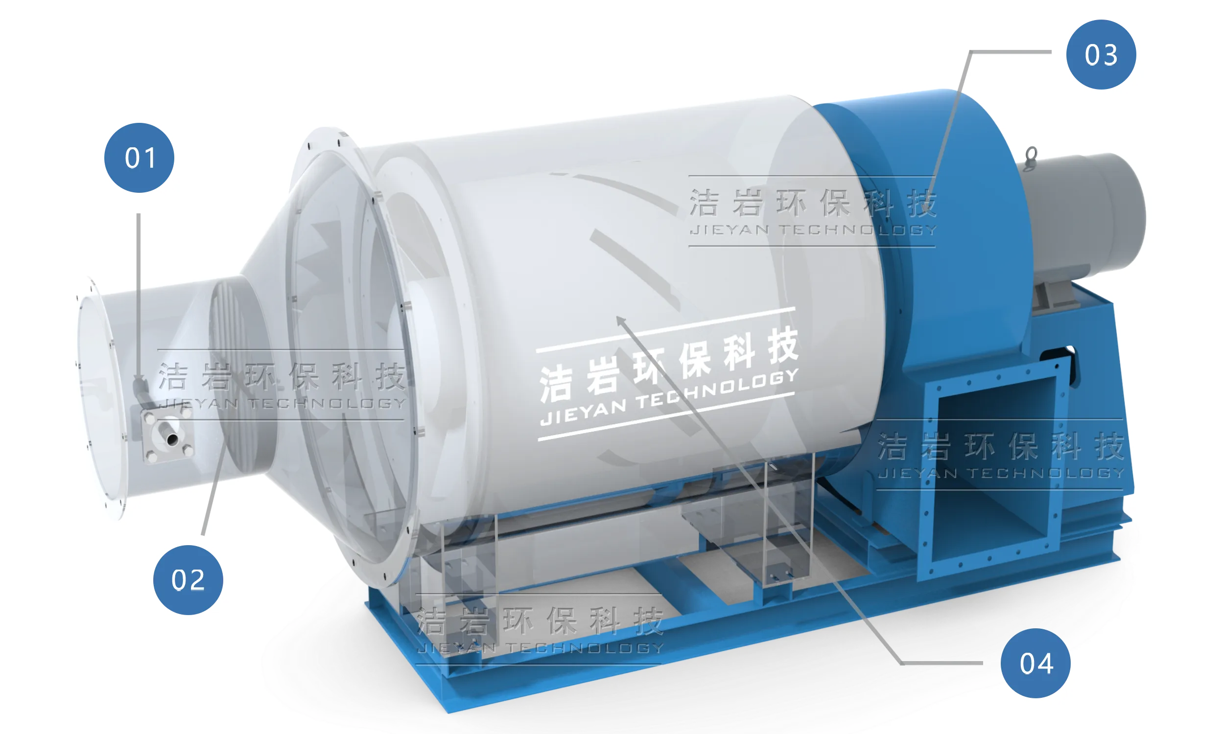 脱水除雾装置采用独特双层旋流结构,有效隔离被捕集的水雾与空气流,防止液滴被上升气流二次夹带。这一设计显著提升了脱水除雾效率,确保出口空气洁净干燥。