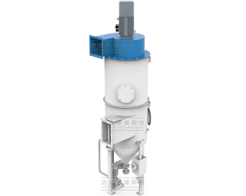 第一重利用切向进风产生离心力,使较重含尘液滴下沉。第二重采用独特双层旋流装置,有效隔离脱除的水雾与上升气流,防止液滴二次夹带,确保脱水除雾效率最大化。
