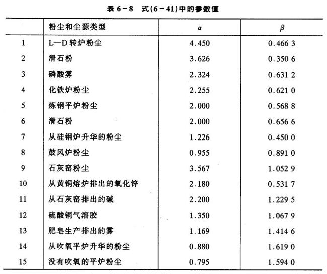 式中:a, b -为特性参数,取决于要净化粉尘的特性和洗涤器特性,Semran给出了部分粉尘的参数,参考P203表6-8。