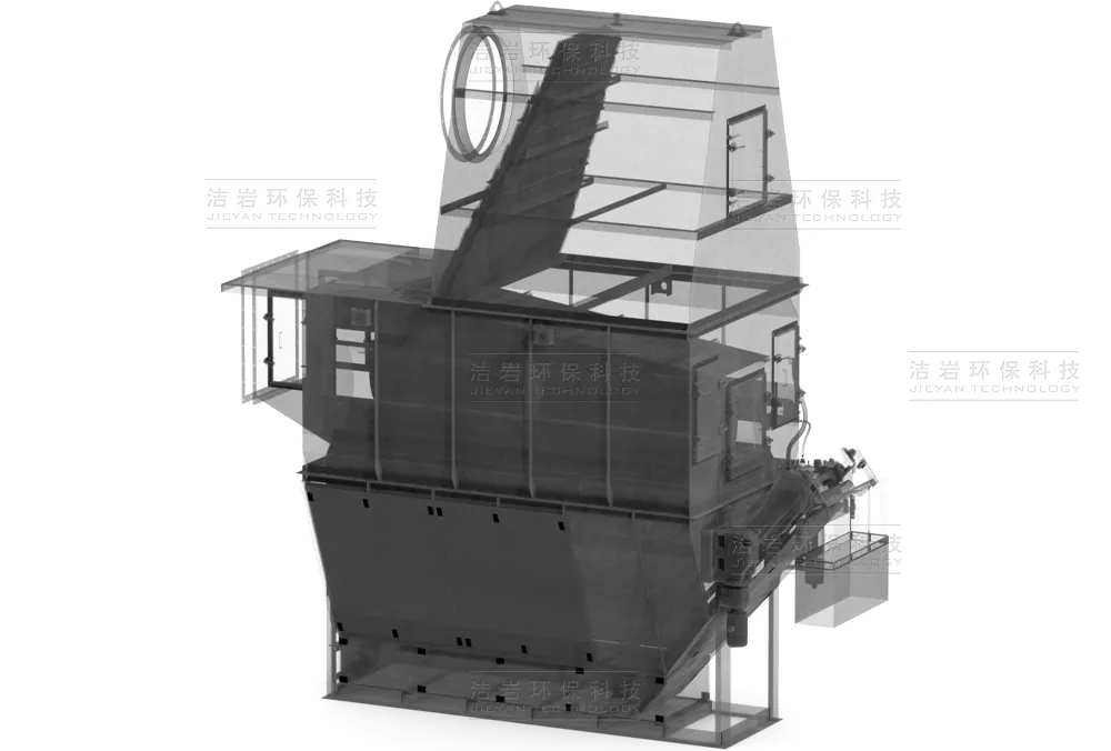 对于只有单边叶轮片的,水槽斗一侧板是倾斜的,便于除渣。如果是双边叶轮片,通常在手动除渣前需要排干水槽斗中的水。检修门的位置和内部 的净空使内部泥渣可以方便的铲到渣箱或泥渣输送带上。