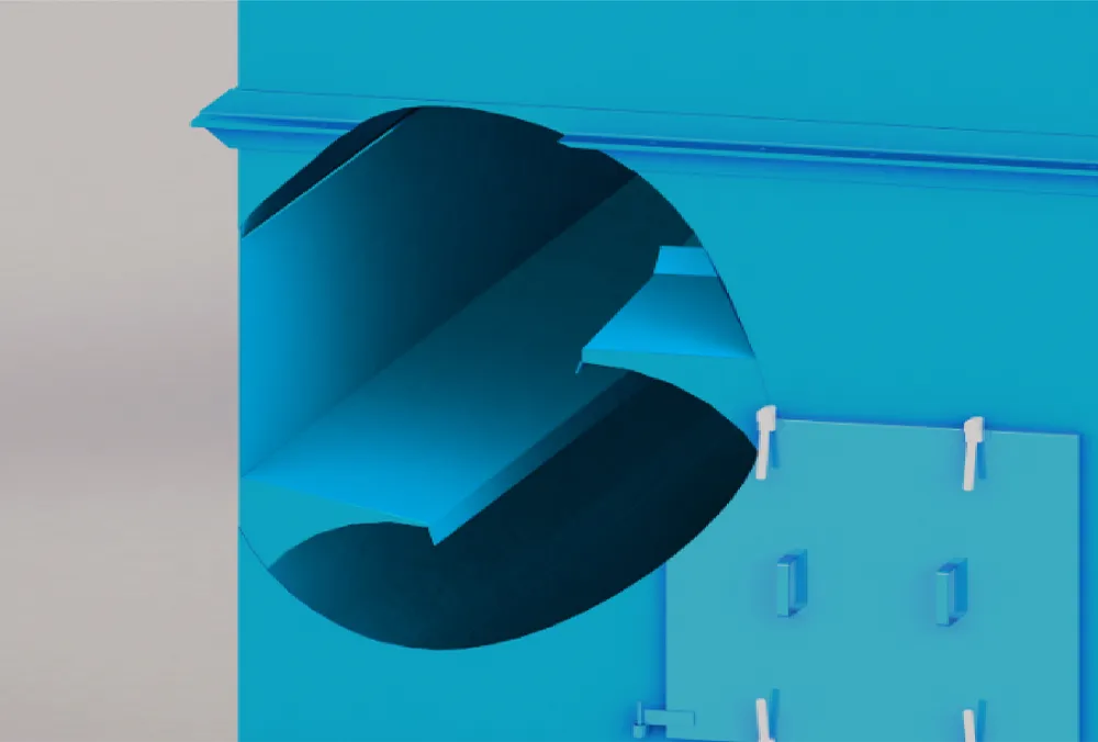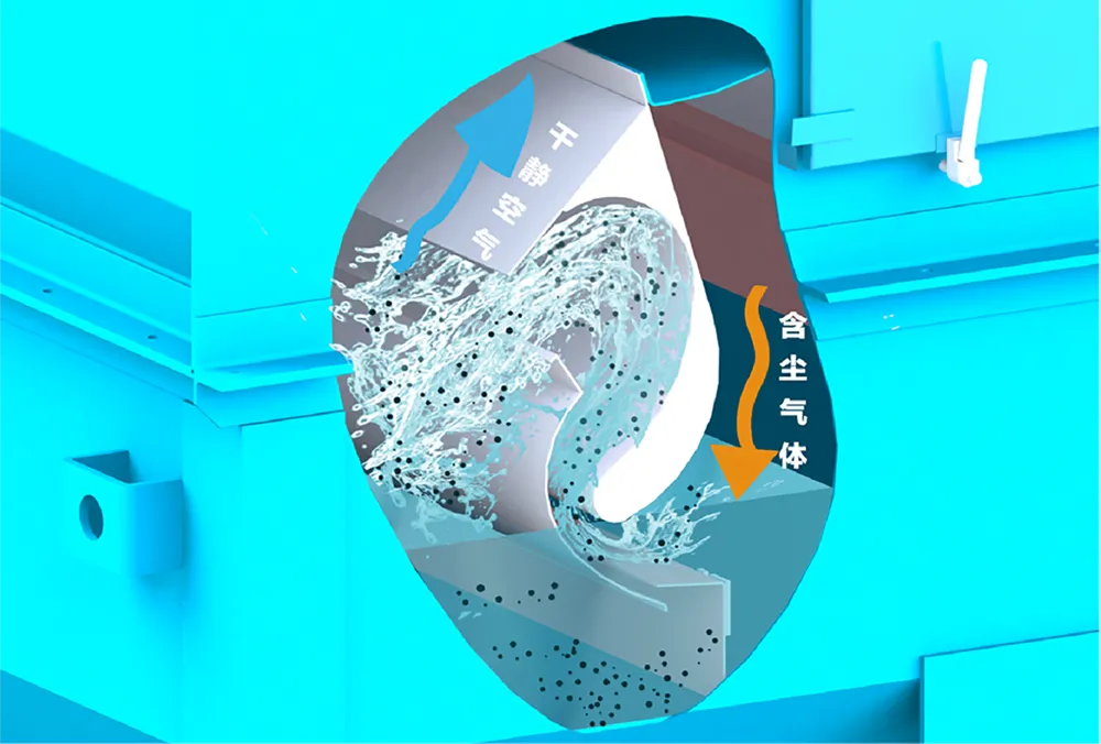 HDC系列采用经流体动力学仿真优化的S型弯道,结合多年实践经验,实现最佳曲线结构。该设计在保障极高粉尘与空气分离效率的同时,维持系统空气阻力处于极低水平,确保运行经济高效。